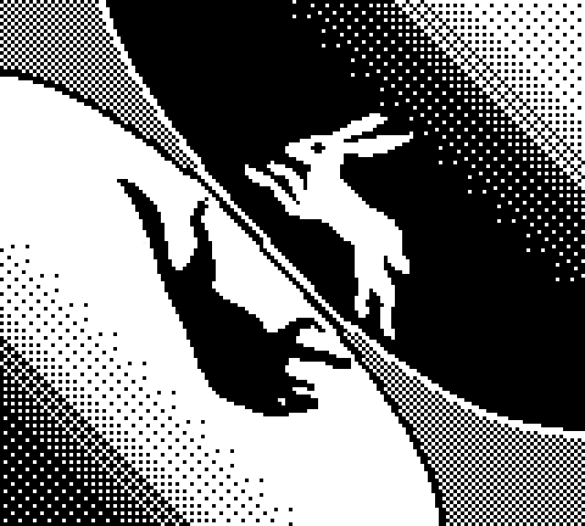 Pure black and white, 127 unique tiles featuring a Hare and Wolf.